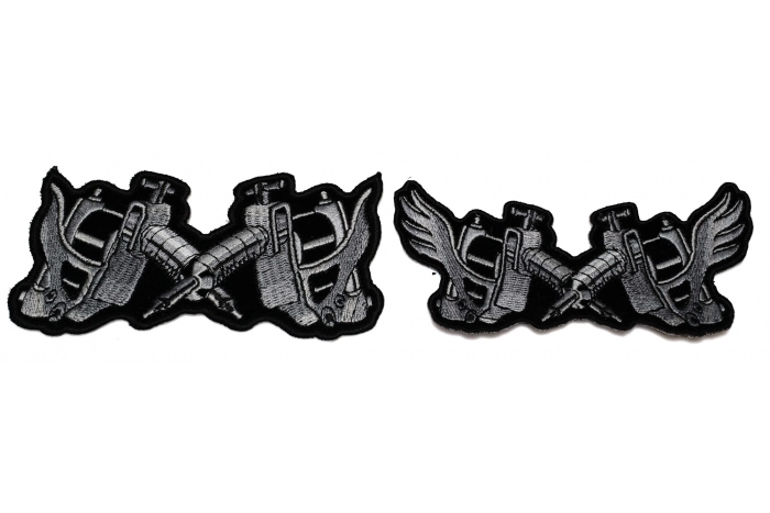 Set of 2 Tattoo Gun Patches with and without wings - 4.5 inches