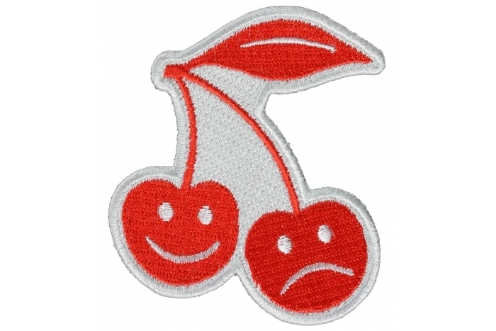 Smiling and Frowning Cherries Iron on Patch - 3x3.1 inch
