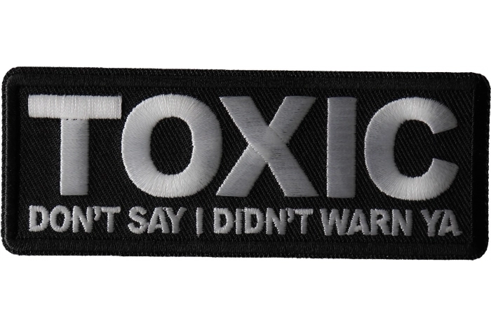 The thing about funny embroidered patches is that they let you say things you couldn't otherwise speak with your mouth. If you went up to a stranger and told her you were a toxic person, she probably wouldn't talk to you. But display the exact same message on an embroidered patch and it gets a laugh. It is strange how we human beings communicate messages like this.