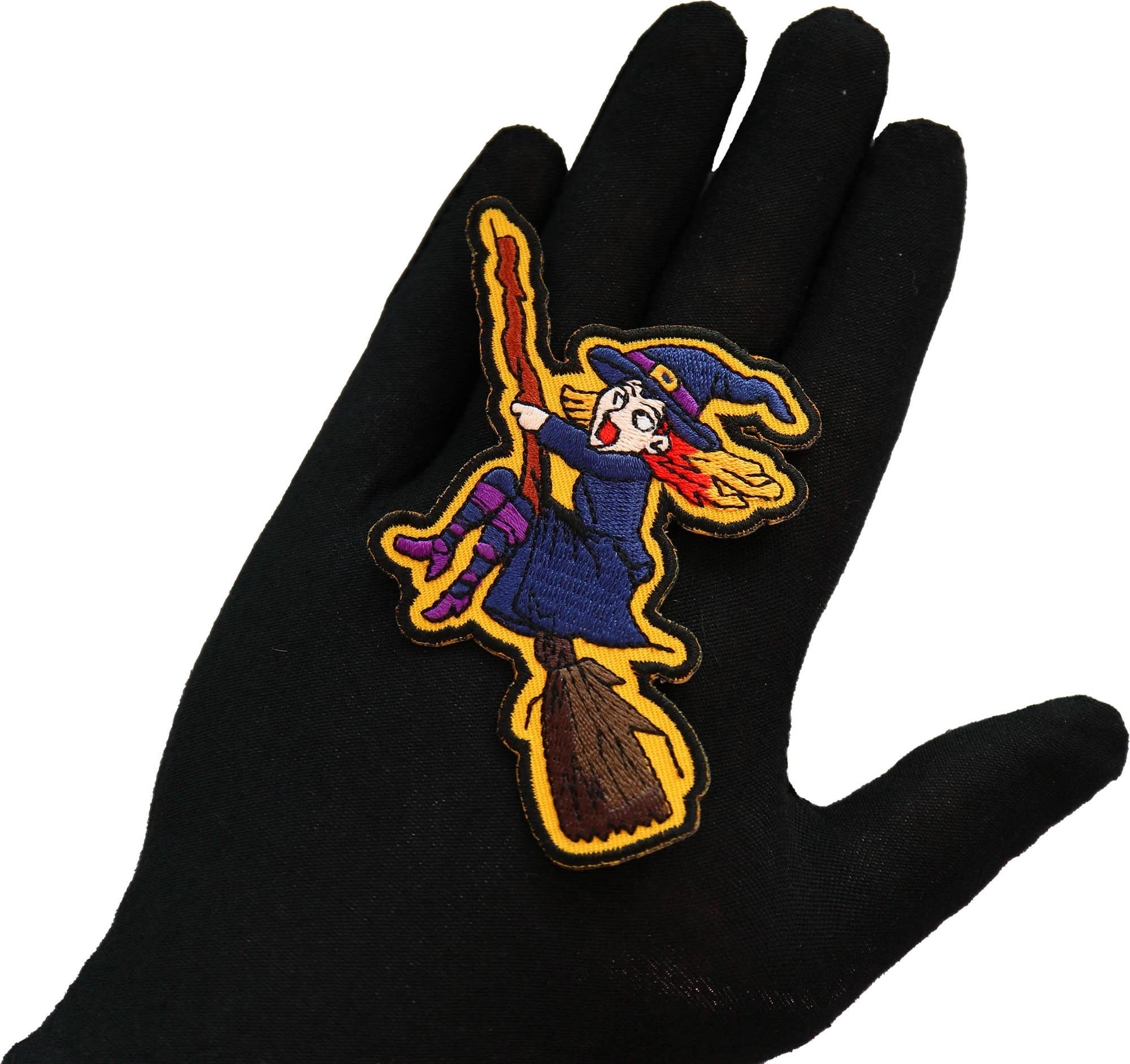 Our specialty is finding great embroidered patches for bikers and veterans. But anyone can buy and attach embroidered patches to their clothing. So if you have a thing for witches on brooms, this one is for you. It is a fantastic looking piece with a unique color palette you don't often find in embroidery.