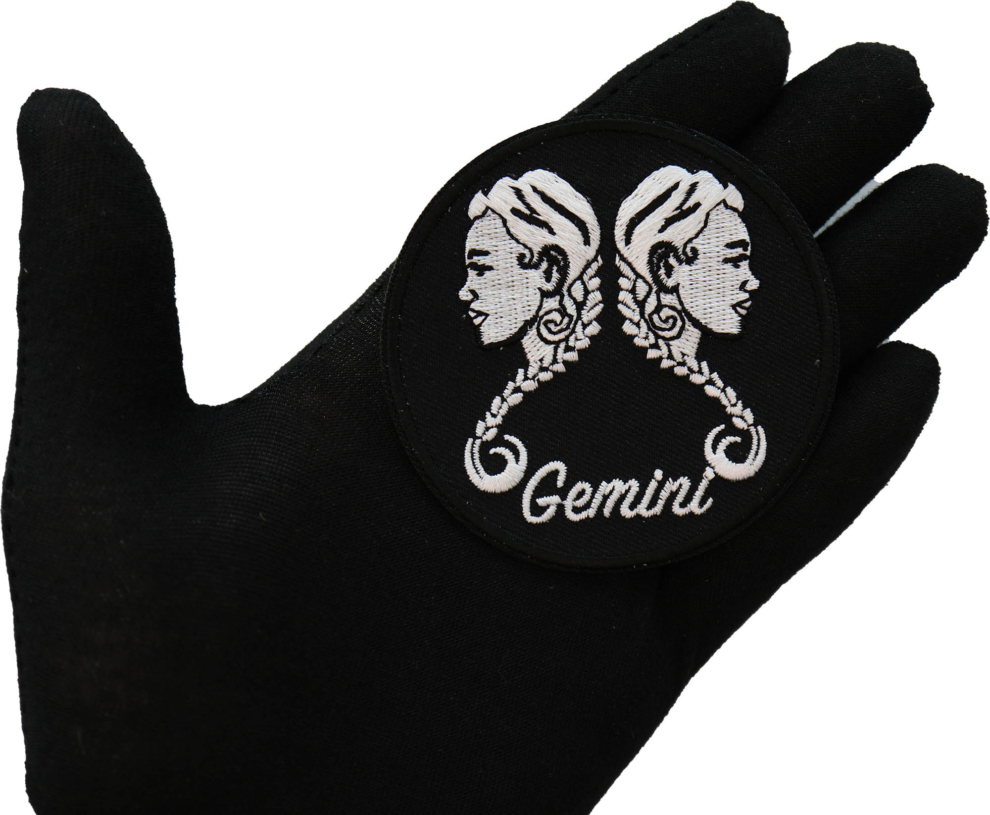 Gemini zodiac sign measures 3x3 inches and is Embroidered in Black / White. The patch can be sewn on to Leather Biker Jackets, Vests or Chaps. The patch can also be ironed on to Shirts, Hats or Denim material such as Jeans. Features plastic iron on backing and clean laser cut embroidered borders. Japanese made iron on glue requires temperature between 270-290 Degrees Fahrenheit. Use a heat press for 12 seconds to adhere the patch permanently to your clothing. Using a regular household iron will probably not be as permanent as one hopes. If possible we recommend you sew on your patches for a more durable application. Never iron on patches to Leather or Nylon materials.