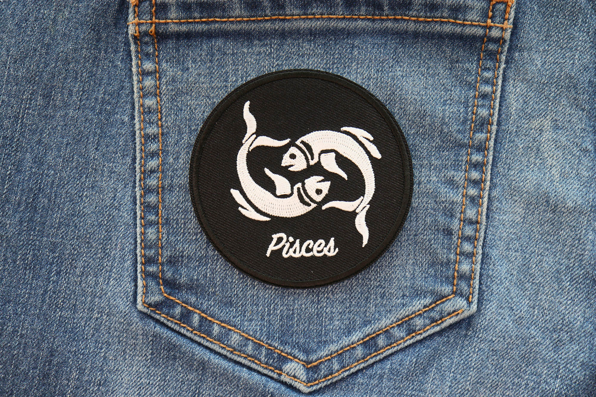 Pisces zodiac sign measures 3x3 inches and is Embroidered in Black / White. The patch can be sewn on to Leather Biker Jackets, Vests or Chaps. The patch can also be ironed on to Shirts, Hats or Denim material such as Jeans. Features plastic iron on backing and clean laser cut embroidered borders. Japanese made iron on glue requires temperature between 270-290 Degrees Fahrenheit. Use a heat press for 30 seconds to adhere the patch permanently to your clothing. Using a regular household iron will probably not be as permanent as one hopes. If possible we recommend you sew on your patches for a more durable application. Never iron on patches to Leather or Nylon materials.