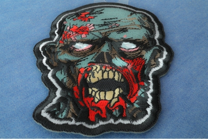 Zombie Patch measures 2.8x3.9 inches and is Embroidered in Black / Blue. The patch can be sewn on to Leather Biker Jackets, Vests or Chaps. The patch can also be ironed on to Shirts, Hats or Denim material such as Jeans. Features plastic iron on backing and clean laser cut embroidered borders. Japanese made iron on glue requires temperature between 270-290 Degrees Fahrenheit. Use a heat press for 30 seconds to adhere the patch permanently to your clothing. Using a regular household iron will probably not be as permanent as one hopes. If possible we recommend you sew on your patches for a more durable application. Never iron on patches to Leather or Nylon materials.