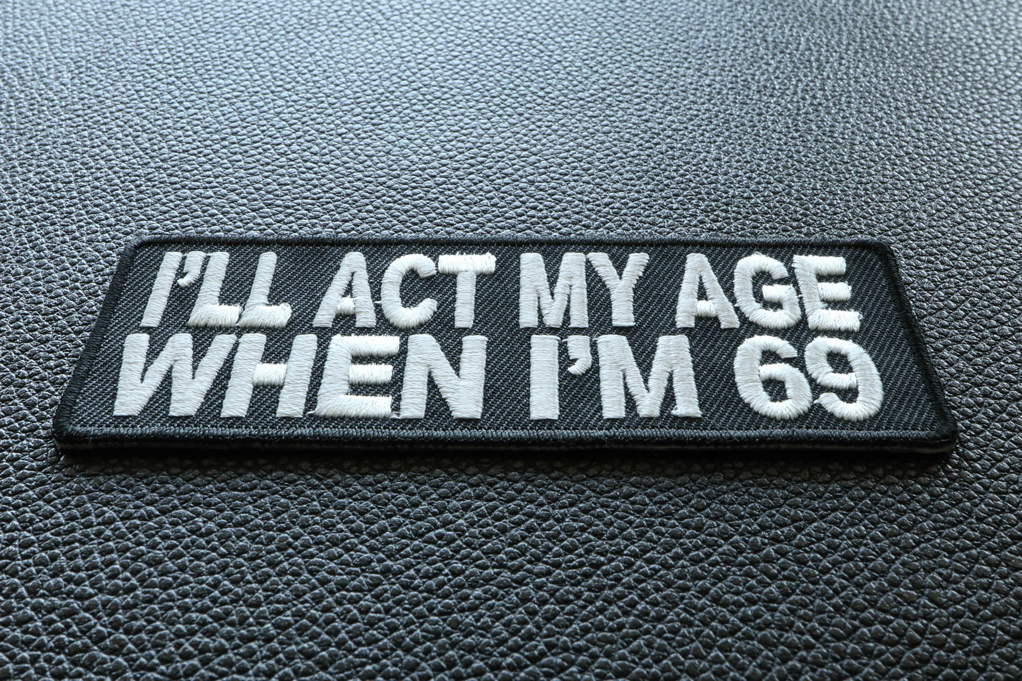 I'll Act My Age When I'm 69 Funny Naughty Iron on Patch - 4x1.5 inch