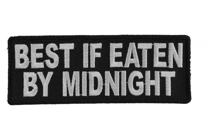 Best If Eaten By Midnight Fun Iron on Patch measures 4x1.5 inches. Embroidered in Black / White. Sew or Iron on the Patch to your Clothing. Never iron on patches to Leather or Nylon Material. This product is also available for wholesale with a wholesale account. Pay cheaper for patches with a wholesale account. We can customize the colors of this patch given you want at least 20 pieces. Just fill out the custom patch page.