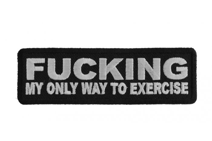 Fucking My Only Exercise Patch. Embroidered with iron on backing. Measures 4x1.25 inches.