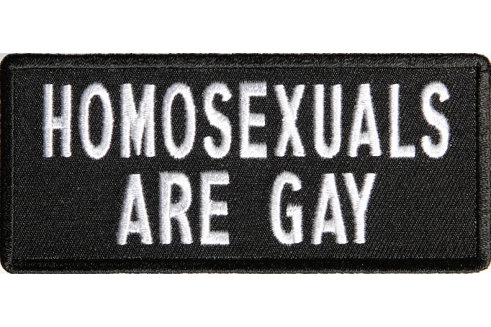 Homosexuals Are Gay. Yeah it's a pretty gay patch yet still funny. If you are gay or lesbian well I hope you are "gay". Or at least happy:) Measures 4x1.75 inches.
