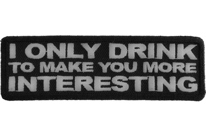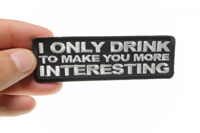 If you know someone who you just cannot be bothered talking to when sober then the I Only Drink To Make You More Interesting Patch is one for you. This witty patch comes from our range of funny sayings patches and measures 4 x 1.5 inches. With a simple yet classic design, this patch features a black banner with white writing embroidered on and surrounded by a thick die cut border for a superb clean finish. This thick border makes it much easier to sew the patch onto your jacket or vest and the compact size of this patch means that it will look cool no matter where you place it on your clothing.