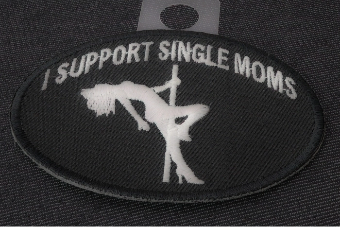 I Support Single Moms Funny Biker Naughty Iron on Patch - 3x2.25 inch