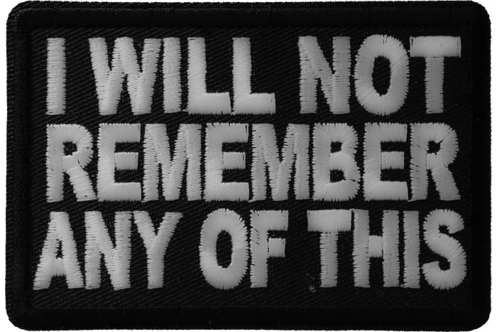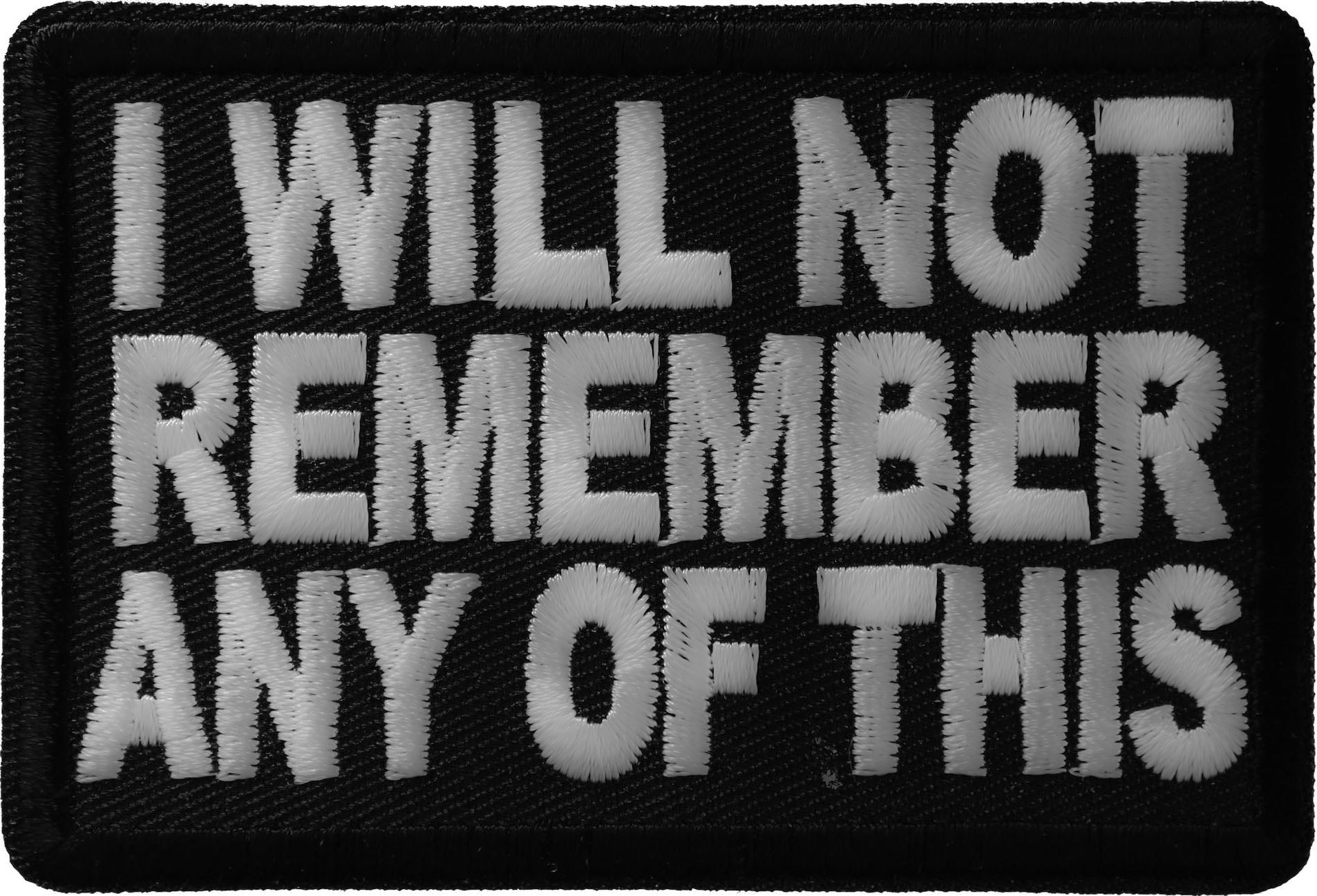I Will Not Remember Any Of This Naughty Iron on Patch - 3x2 inch