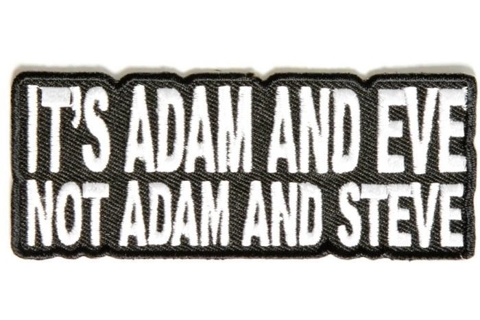 It's Adam and Even not Adam and Steve patch measures 4x.15 inches. It is embroidered in white over black.