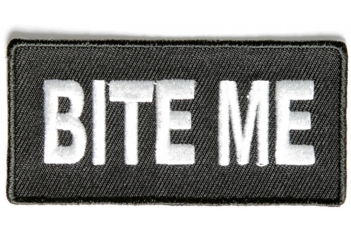 Buy the Bite Me Patch measuring 4x1.5 inches. Patch is embroidered in Black / White. Sew on badge to your leather or iron on the applique to clothing. You can also purchase this patch wholesale from us by opening up a wholesale account. Simply apply for wholesale patches today and we'll set you up an account. If you are interested in having a custom patch made you can also ask about our custom patches. Never iron on patches to leather or nylon material. For permanent application always sew on patches. Using a household iron will not permanently adhere this iron on patch to your clothing. Only a heat press will work in adhering the patch properly to clothing.