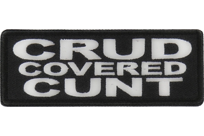 Crud Covered Cunt Patch measures 4x1.5 inches and is Embroidered in Black / White. The patch can be sewn on to Leather Biker Jackets, Vests or Chaps. The patch can also be ironed on to Shirts, Hats or Denim material such as Jeans. Features plastic iron on backing and clean laser cut embroidered borders. Japanese made iron on glue requires temperature between 270-290 Degrees Fahrenheit. Use a heat press for 30 seconds to adhere the patch permanently to your clothing. Using a regular household iron will probably not be as permanent as one hopes. If possible we recommend you sew on your patches for a more durable application. Never iron on patches to Leather or Nylon materials.