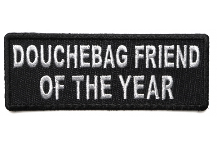 Douchebag Friend of the Year Funny Iron on Patch - 4x1.5 inch