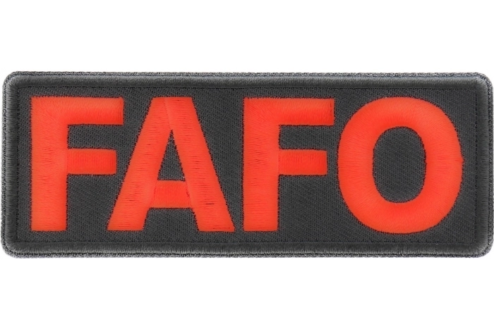 FAFO Patch measures 4x1.5 inches and is Embroidered in Black / Red. The patch can be sewn on to Leather Biker Jackets, Vests or Chaps. The patch can also be ironed on to Shirts, Hats or Denim material such as Jeans. Features plastic iron on backing and clean laser cut embroidered borders. Japanese made iron on glue requires temperature between 270-290 Degrees Fahrenheit. Use a heat press for 30 seconds to adhere the patch permanently to your clothing. Using a regular household iron will probably not be as permanent as one hopes. If possible we recommend you sew on your patches for a more durable application. Never iron on patches to Leather or Nylon materials.