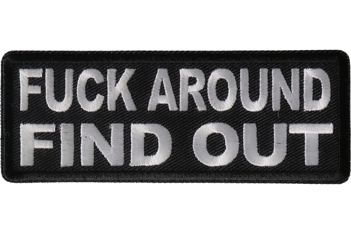 Fuck Around Find Out Patch measures 4x1.5 inches and is Embroidered in Black / White. The Small can be sewn on or ironed on to clothing. The Fuck Around Find Out Patch features plastic iron on backing and clean laser cut embroidered borders.