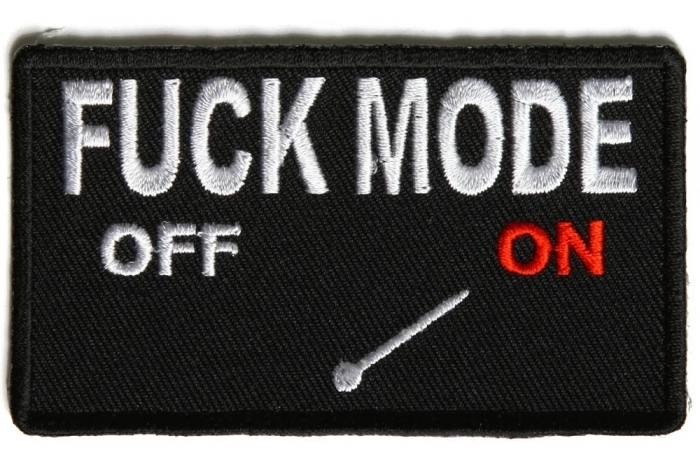 Fuck Mode On Patch measures 3.5x2 inches and is Embroidered in Black / White / Red. The Small Patch can be sewn on or ironed on to clothing such as Denim or Leather Jackets, Vests, Hats, Back Packs, Shirts. Features plastic backing and embroidered die cut borders.