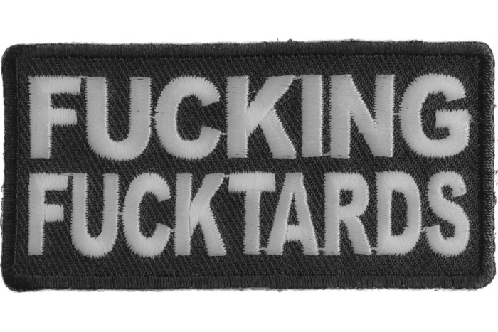 Fucktards is becoming quite a popular phrase to describe some people you come across nowadays. This patch says it nicely "Fucking Fucktards" is embroidered in white over black twill. The badge can be ironed or sewed on to your clothing. Refrain from ironing on patches to leather or nylon material. The die cut borders on this patch makes it easy for the patch to be sewn on to leather jackets and vests. Measures 3x1.5 inches this patch will fit almost anywhere and has thick embroidered letters so it can be easily read as well. We do sell these patches at wholesale as well. And if you are looking for something specific we do make custom patches if you are interested in getting at least 20 pieces of a design.