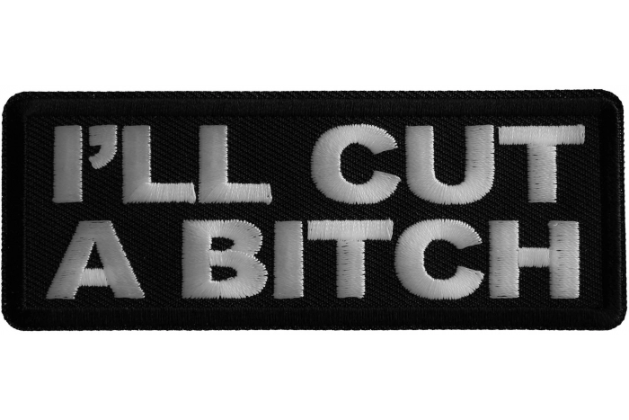 I'll Cut a Bitch Iron on Patch measures 4x1.5 inches and is Embroidered in Black / White. The patch can be sewn on to Leather Biker Jackets, Vests or Chaps. The patch can also be ironed on to Shirts, Hats or Denim material such as Jeans. Features plastic iron on backing and clean laser cut embroidered borders. Japanese made iron on glue requires temperature between 270-290 Degrees Fahrenheit. Use a heat press for 30 seconds to adhere the patch permanently to your clothing. Using a regular household iron will probably not be as permanent as one hopes. If possible we recommend you sew on your patches for a more durable application. Never iron on patches to Leather or Nylon materials.