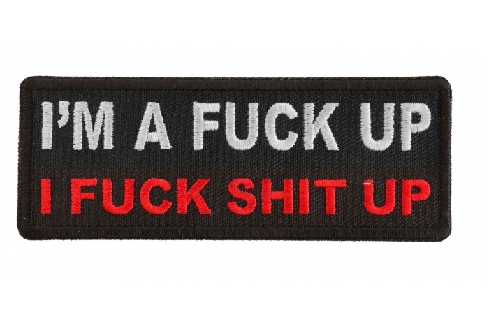 I'm a Fuck Up I Fuck Shit Up Patch measures 4x1.5 inches and is Embroidered in Black / White / Red. The Small Patch can be sewn on or ironed on to clothing such as Denim or Leather Jackets, Vests, Hats, Back Packs, Shirts. Features plastic backing and embroidered die cut borders.