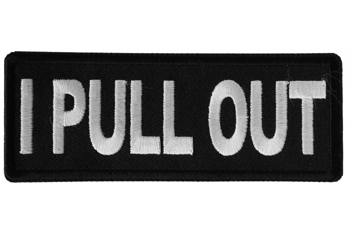 I Pull Out Patch measures 4x1.5 inches and is Embroidered in Black / White. The Small Patch can be sewn on or ironed on to clothing. You should sew patches on to leather jackets or vests. Refrain from ironing on patches to nylon or leather material. The correct iron on temperature is 270 degrees Fahrenheit. If you are using a household iron you should press down for 30 seconds. If you are using a heat press 12 seconds is sufficient. The patch features clean cut embroidered borders which will make it easy to sew on. We cannot recommend an iron setting which will yield you 270 degrees temperature. You can use a frying pan thermometer to find the correct setting of your iron. The temperature setting is very important. Plus or minus 10 degrees of variation is acceptable. But you should never go over 280 degrees Fahrenheit when ironing on the patch. Anything under 260 will also not activate the glue properly. The recommended 270 degrees Fahrenheit setting applies to all our iron on patches. We cannot speak for other manufacturers though. We spend the extra dime to use Japanese brand glue which works very well if applied at the right temperature.