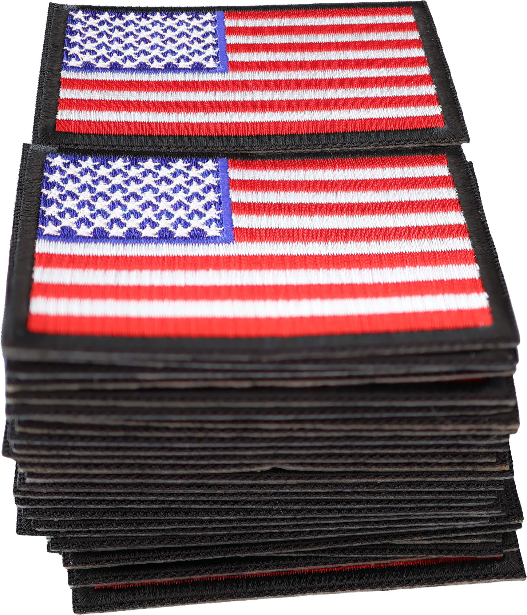 American Flag Patch Embroidered 3x2 inches with Black Borders 50 Pack - 3 inches, Embroidered