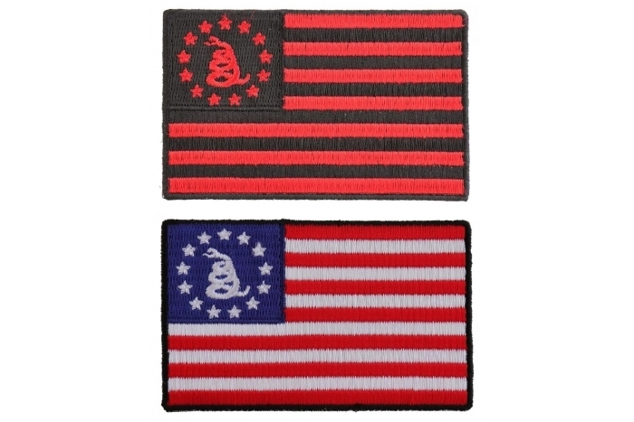 Gadsden Flag RWB and Black Red 2 Iron On Flags - 3.5 inches