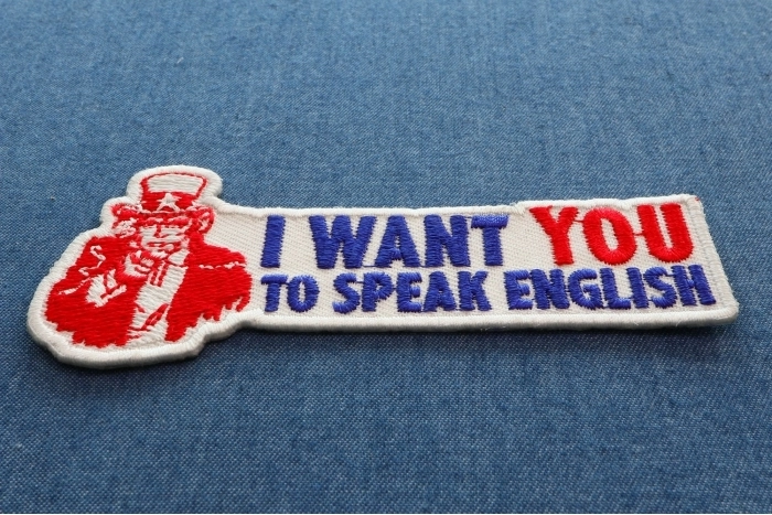 I Want You To Speak English Uncle Sam Patriotic Iron on Patch - 4x1.75 inch