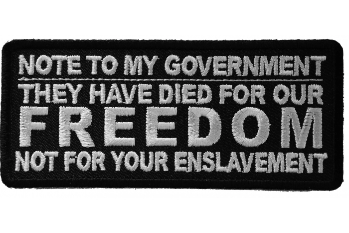 - Note To My Government, They Have Died For Our Freedom, Not For Your Enslavement Patriotic Iron on Patch