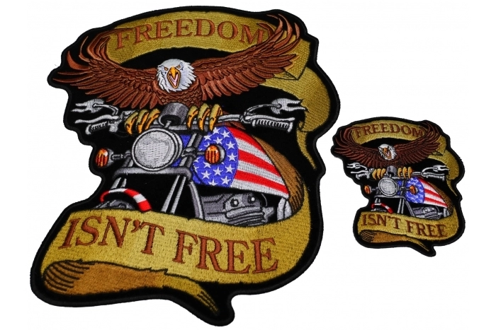 - Freedom Isn't Free Two Piece Small and Large Eagle Biker Patch Set