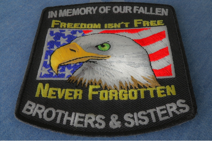 - In Memory Of Our Fallen Military Brothers and Sisters Patriotic Iron on Patch