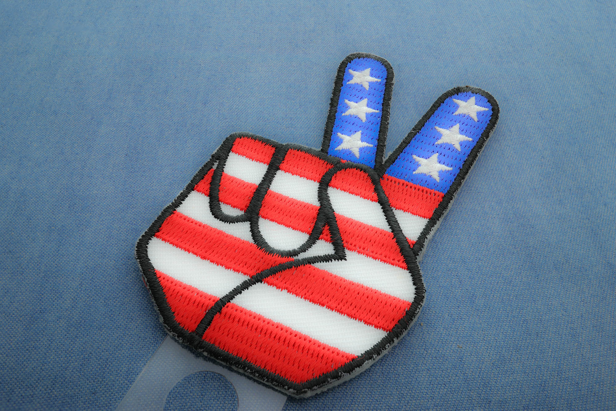 - Peace Hand Sign with American Flag Patriotic Iron on Patch