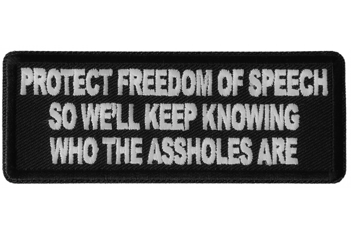 - Protect Freedom of Speech so We'll Keep Knowing Who the Assholes Are Patriotic Iron on Patch