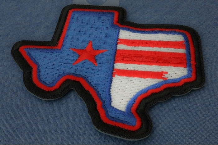 Texas Pride Iron on Patch measures 3.25x3.13 inches and is Embroidered in Black / Blue / White / Ted. The patch can be sewn on to Leather Biker Jackets, Vests or Chaps. The patch can also be ironed on to Shirts, Hats or Denim material such as Jeans. Features plastic iron on backing and clean laser cut embroidered borders. Japanese made iron on glue requires temperature between 270-290 Degrees Fahrenheit. Use a heat press for 30 seconds to adhere the patch permanently to your clothing. Using a regular household iron will probably not be as permanent as one hopes. If possible we recommend you sew on your patches for a more durable application. Never iron on patches to Leather or Nylon materials.