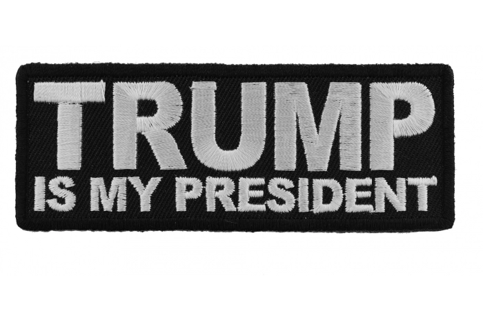 Trump is My President Patch measures 4x1.5 inches and is Embroidered in Black / White. The Small Patch can be sewn on or ironed on to clothing such as Denim or Leather Jackets, Vests, Hats, Back Packs, Shirts. Features plastic backing and embroidered die cut borders.
