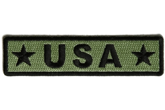 USA black and sand patch measures 4x1 inches and is Embroidered in Black / Desert Sand. The Small Patch can be sewn on or ironed on to clothing such as Denim or Leather Jackets, Vests, Hats, Back Packs, Shirts. Features plastic backing and embroidered die cut borders.