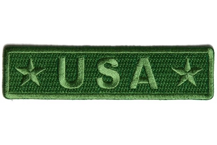 USA od green Patch measures 4x1 inches and is Embroidered in Green. The Small Patch can be sewn on or ironed on to clothing such as Denim or Leather Jackets, Vests, Hats, Back Packs, Shirts. Features plastic backing and embroidered die cut borders.