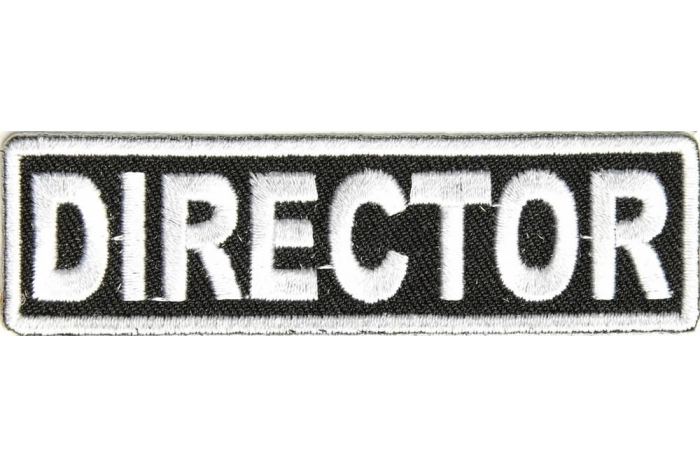 Director patch is embroidered in white over black measuring 3.5x1 inches featuring white borders.