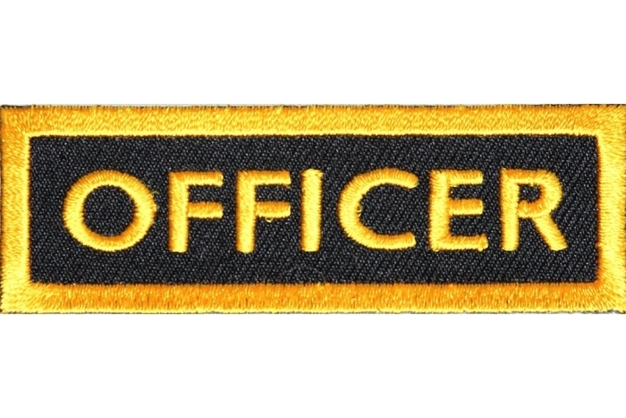 Officer embroidered in yellow over black. The Patch can be ironed or sewed on.