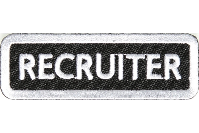 Recruiter embroidered in white over black. The Patch can be ironed or sewed on.