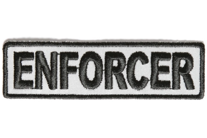 Enforcer Patch measures 3.5x1 inches. The iron on badge is embroidered in Black over reflective fabric. The applique can be sewn on to leather jackets and vests. The patch is used to rank your members in your club. The size is perfect to fit on the front of any jacket or vest. Please do not iron on patch to leather or nylon material. You can easily sew on this patch through its borders