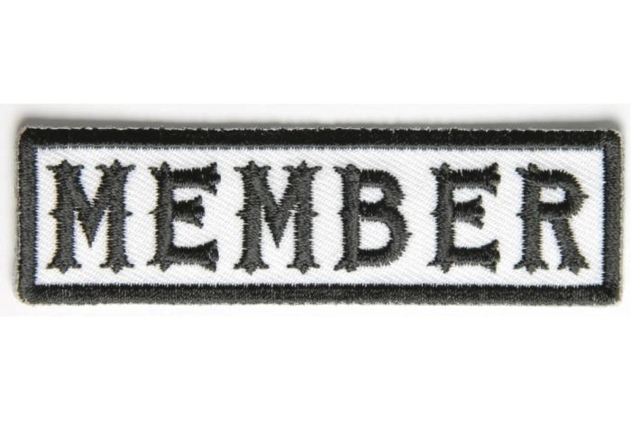 Member Patch Black on White measures 3.5x1 inches and is Embroidered in White / Black. The Small Patch can be sewn on or ironed on to clothing such as Denim or Leather Jackets, Vests, Hats, Back Packs, Shirts. Features plastic backing and embroidered die cut borders.