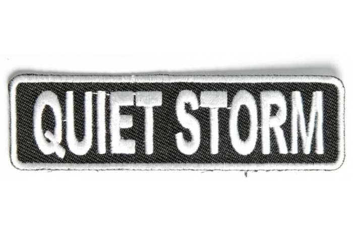 Quiet Storm Patch is an embroidered iron on patch measuring 3.5x1 inch. Apply it to your clothing by sewing it on or ironing it on. The patch features die cut borders for easy sewing and iron on backing for easy iron on application. Please do not iron on patches to leather or nylon material. Please remember using a household iron will not produce professional results. Both heat and pressure is required to adhere an iron on patch properly to a garment.