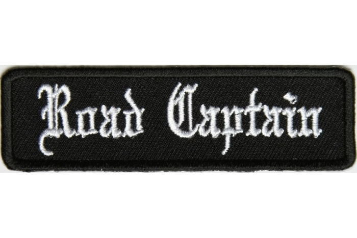 Road Captain Patch in Old English measures 3.5x1 inches and is Embroidered in Black / White. The Small Patch can be sewn on or ironed on to clothing such as Denim or Leather Jackets, Vests, Hats, Back Packs, Shirts. Features plastic backing and embroidered die cut borders.
