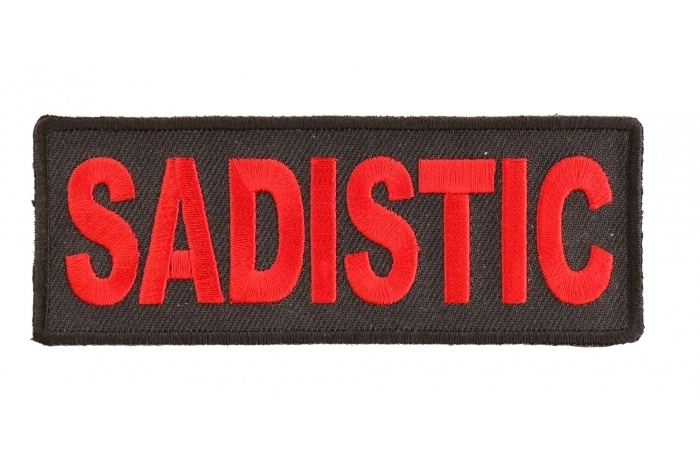 The 4x1.5 inch rectangle shaped black patch has Sadistic embroidered in red. Iron on or sew on the patch. Finally a patch for all you Sadistic Fucks.