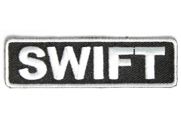 Swift Patch is an embroidered iron on patch measuring 3.5x1 inch. Apply it to your clothing by sewing it on or ironing it on. The patch features die cut borders for easy sewing and iron on backing for easy iron on application. Please do not iron on patches to leather or nylon material. Please remember using a household iron will not produce professional results. Both heat and pressure is required to adhere an iron on patch properly to a garment.