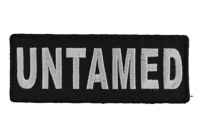 Untamed Patch measures 4x1.5 inches and is Embroidered in Black / White. The Small Patch can be sewn on or ironed on to clothing such as Denim or Leather Jackets, Vests, Hats, Back Packs, Shirts. Features plastic backing and embroidered die cut borders.