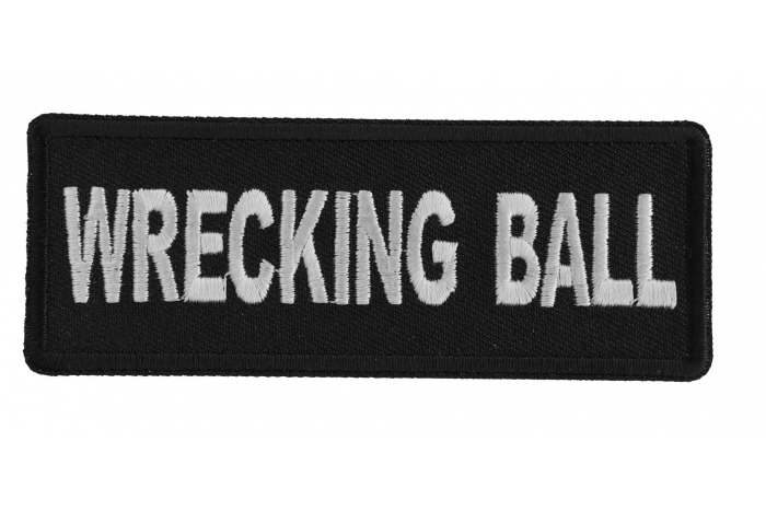 Wrecking Ball Patch measures 4x1.5 inches and is Embroidered in Black / White. The Small Patch can be sewn on or ironed on to clothing such as Denim or Leather Jackets, Vests, Hats, Back Packs, Shirts. Features plastic backing and embroidered die cut borders.