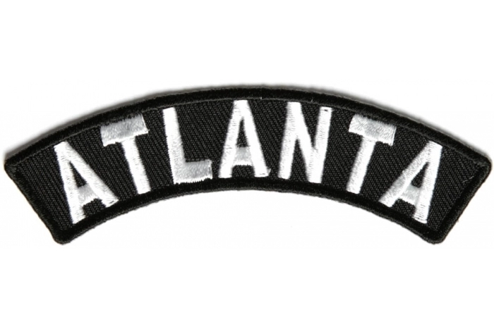 Atlanta Patch measures 4 inches wide and is about an inch tall. Embroidered in white over black this city name rocker is designed to be sewn or ironed on the shoulders of your jacket or the front of your vest. Be proud of your local town, we've got quite a selection of different cities and we will add more in the future. We only stock these in small sizes, we do not have them available in large back patches. You can however purchase large blank rockers from us and have them embroidered at your local mall (usually you'll find someone at mall's doing embroidery on to hats, they can also embroider over our blank patches. We can make custom patches given you want at least 20 pieces of a design.