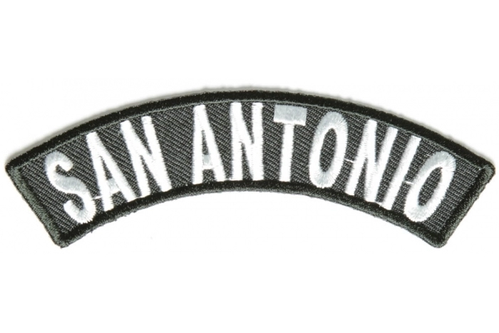 San Antonio Rocker Patch measures 4x1.5 inches. The patch is embroidered in colors of Black / White. Iron or sew on this patch to your clothes. We ship today! The embroidered patch can be sewn or ironed on. Please refrain from ironing on patches to leather or nylon materials. The thick die cut borders on our patches make them easy to be sewn on to leather or nylone jackets and vests when ironing on is not an option. You may also purchase these patches for wholesale by opening up a wholesale account with us.